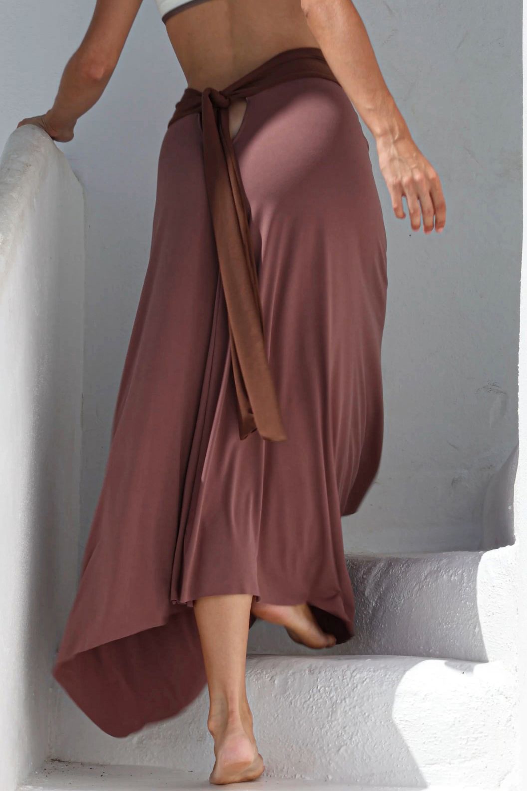 Vestido Falda Marrón Multiposición Mykonos, Gogana; El Vestido Falda Marrón Multiposición está confeccionado con tejido punto de seda en color marrón con cinturilla en color marrón oscuro en licra. La parte de arriba como la parte de abajo son de una pieza , por lo tanto, garantiza la máxima comodidad. La cinturilla en de color marrón oscuro que se pueden ajustar en cuello y espalda.